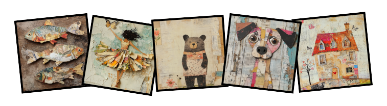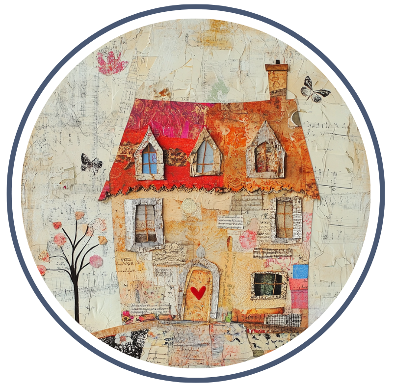 I believe art should feel accessible, forgiving, and fun. Whether you’re brand new to collage or returning to your creativity after a long break, you’re welcome here. I’ll guide you step by step, encourage you to trust your instincts, and remind you that there’s no right or wrong way to create.